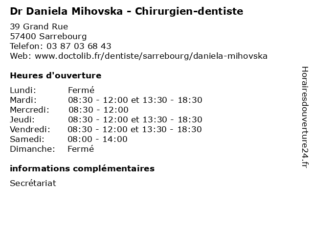 | Mardi | 08:30-12:00 et 13:30-18:30 |