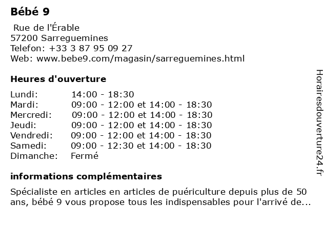 | Samedi | 09:00-12:30 et 14:00-18:30 |