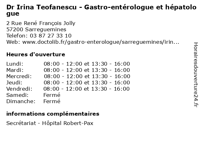 1 Dr Jean-François Ardizzone - Gastro-entérologue et hépatologue (Distance: 0,00 km) 2 Rue René François Jolly, 57200 Sarreguemines ardizzone, consultation, docteur, dr, entérologue, et, francois, françois, gastro, hépatologue, jean, med, médecin, traitement 2 Dr Ahmed Ourfali - Gastro-entérologue et hépatologue (Distance: 0,00 km) 2 Rue René François Jolly, 57200 Sarreguemines ahmed, consultation, docteur, dr, entérologue, et, gastro, hépatologue, med, médecin, ourfali, traitement 3 Dr Marie-Laurence Rouhier Ott - Gastro-entérologue et hépatologue (Distance: 0,00 km) 2 Rue René François Jolly, 57200 Sarreguemines consultation, docteur, dr, entérologue, et, gastro, hépatologue, laurence, marie, med, médecin, ott, rouhier, traitement 4 Dr. Jean-Francois Ardizzone - Gastro-entérologie (Distance: 0,37 km) 2 rue René François-jolly, 57211 Sarreguemines ardizzone, consultation, docteur, dr., entérologie, francois, gastro, jean, santé 5 Medecin Martin Neumeier (hépatologue) (Distance: 2,38 km) 7 Rue des Vosges, 57200 Sarreguemines docteur, hépatologue, martin, medecin, neumeier, sante, services 6 Dr Ali Abbas - Gastro-entérologue et hépatologue (Distance: 2,41 km) 8 Rue des Vosges, 57200 Sarreguemines abbas, ali, cabinet, digestive, docteurs, dr, endoscopie, entérologue, enérologue, et, gastro, hépatologie, hépatologue, proctologie |