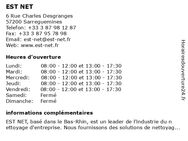 | Lundi | 08:00-12:00 et 13:00-17:30 |