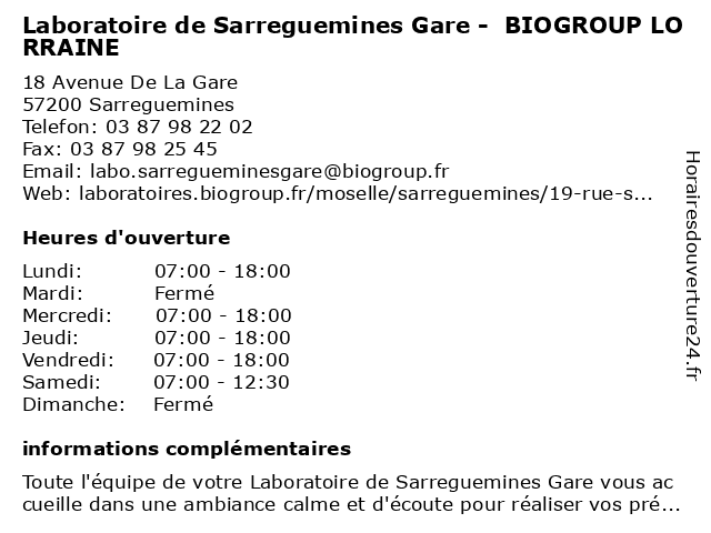 Termes de recherche pour Laboratoire de Sarreguemines Gare - BIOGROUP LORRAINE:de, gare, laboratoire, lorraine, sarreguemines, biogroup, dépistages, laboratoire de diagnostic |