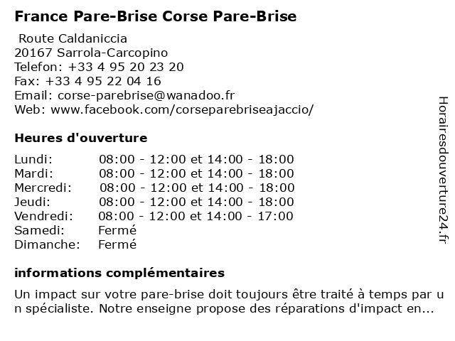 3 France Pare Brise (Distance: 0,37 km) . De Pernicaggio, 20000 Ajaccio bris de glace, brise, france, pare, pare brise, services 4 Corse Gaz - Corse Carburants (Distance: 0,52 km) – Zone Industrielle de Baléone, 20167 Mezzavia air, carburants, corse, distributeur, distributeurs, gaz, liquide 5 Corse Telecom (Distance: 0,64 km) - Route Nationale 193, 20090 Borgo 1001, ampoules, batteries, chargeurs, corse, piles, telecom, telecommandes 6 BigShip - Corse Accastillage (Distance: 0,76 km) - Centre Commercial Atrium - Retail PARK -Lieu dit Pernicaggio, 20167 Sarrola-Carcopino accastillage, bigship, corse, entretien, magasin, sécurité, équipements |