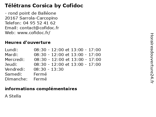 | Lundi | 08:30-12:00 et 13:00-17:00 |