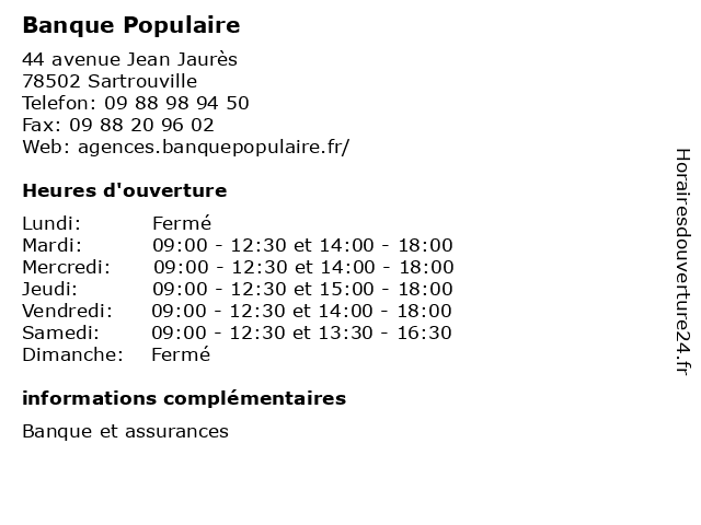1 Banque Populaire (Distance: 0,40 km) 11 avenue de la République, 78500 Sartrouville agence, assurance, bancaire, banque, populaire 2 Banque Populaire (Distance: 1,34 km) 1 rue Saint-Nicolas, 78601 Maisons-Laffitte agence, assurance, bancaire, banque, populaire 3 Banque Populaire (Distance: 3,67 km) 12 rue du Général Leclerc, 78360 Montesson agence, assurance, bancaire, banque, populaire 4 Banque Populaire (Distance: 4,01 km) 1 avenue Foch, 95240 Cormeilles-en-Parisis agence, assurance, bancaire, banque, populaire 5 Banque Populaire (Distance: 5,50 km) 73 boulevard Carnot, 78110 Le Vesinet agence, assurance, bancaire, banque, populaire 6 Banque Populaire (Distance: 5,62 km) 6 rue du Général de Gaulle, 95220 Herblay agence, assurance, bancaire, banque, populaire |