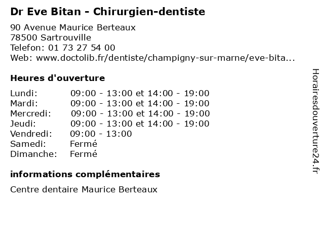| Lundi | 09:00-13:00 et 14:00-19:00 |