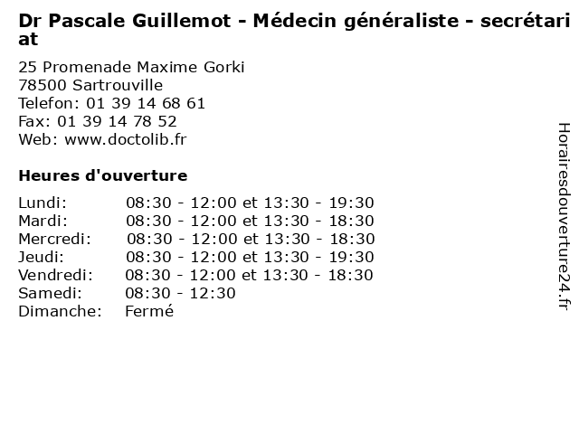 | Lundi | 08:30-12:00 et 13:30-19:30 |