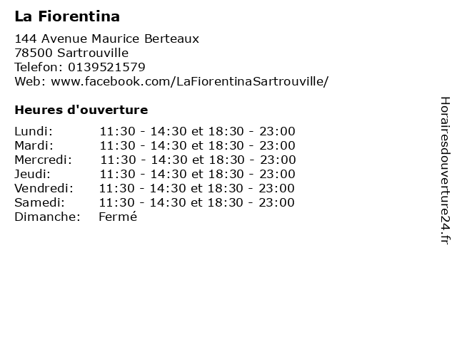 | Samedi | 11:30-14:30 et 18:30-23:00 |