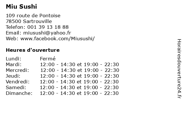 | Mardi | 12:00-14:30 et 19:00-22:30 |