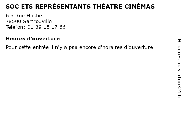 | Appeler SOC ETS REPRÉSENTANTS THÉATRE CINÉMAS | |