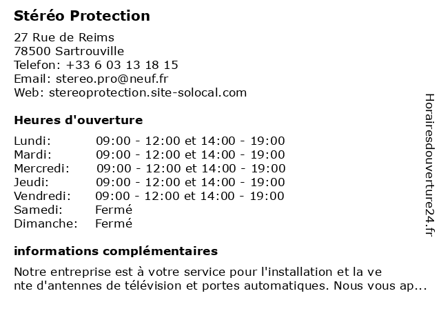 | Lundi | 09:00-12:00 et 14:00-19:00 |