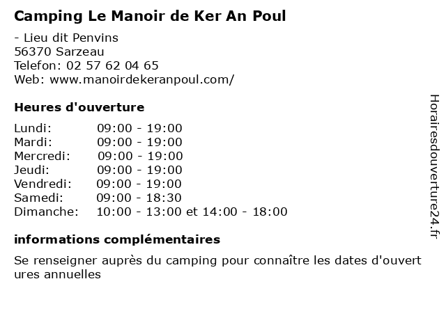 | Dimanche | 10:00-13:00 et 14:00-18:00 |