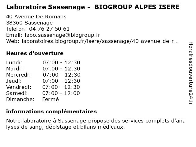 Termes de recherche pour Laboratoire Sassenage - BIOGROUP ALPES ISERE:sassenage, laboratoire, alpes, isere, biogroup, dépistages, laboratoire de diagnostic |