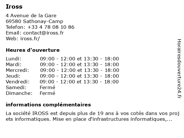 Lundi | 09:00-12:00 et 13:30-18:00 |