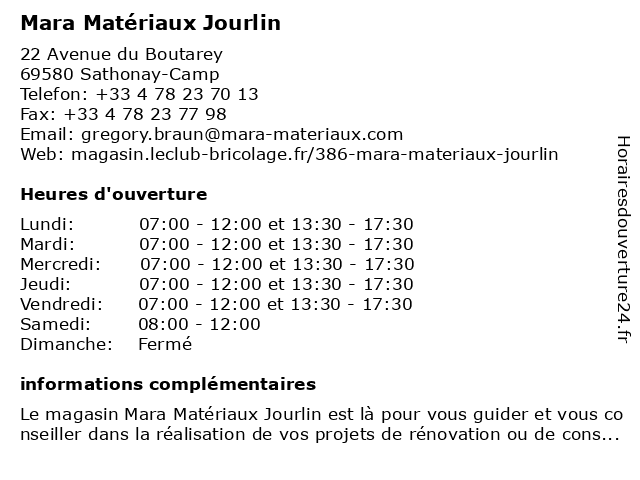 | Lundi | 07:00-12:00 et 13:30-17:30 |