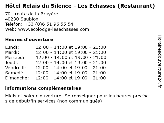 Termes de recherche pour Hôtel Relais du Silence - Les Echasses (Restaurant):relais, restaurant, du, les, hebergement, hôtel, silence, echasses |
