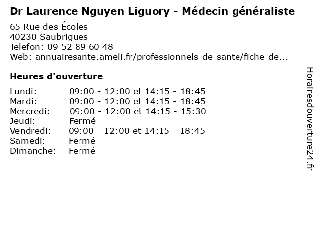 Termes de recherche pour Dr Laurence Nguyen Liguory - Médecin généraliste:générale, medecine, santé, laurence, généraliste, docteur, médecin, consultation, dr, nguyen, liguory |
