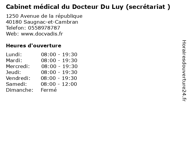 Termes de recherche pour Cabinet médical du Docteur Du Luy (secrétariat ):du, cabinet, santé, medical, secretariat, docteur, médecins, consultation, luy |