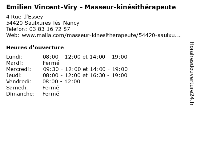 | Mercredi | 09:30-12:00 et 14:00-19:00 |
