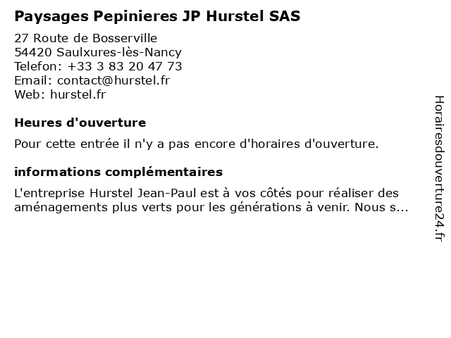 | Appeler Paysages Pepinieres JP Hurstel SAS | |