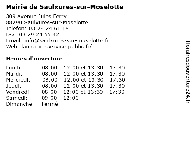 | Mardi | 08:00-12:00 et 13:30-17:30 |