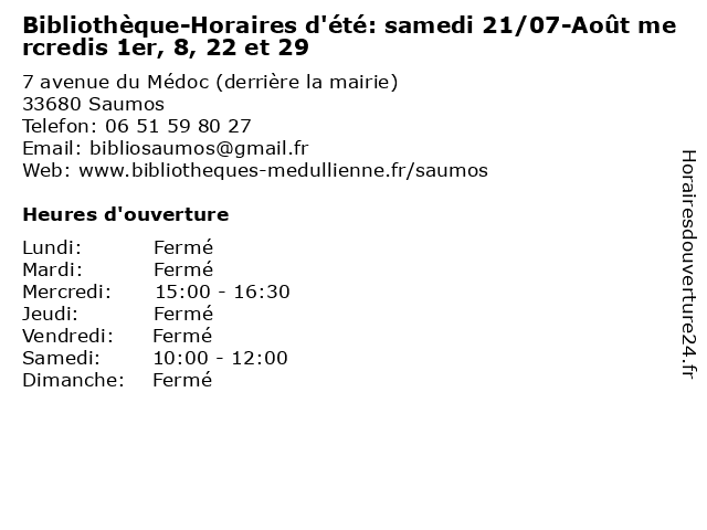 Termes de recherche pour Bibliothèque-Horaires d'été: samedi 21/07-Août mercredis 1er, 8, 22 et 29:et, horaires, livres, 1er, bibliotheque, août, 22, 29, d'été, samedi, revues, mercredis, 21/07 |