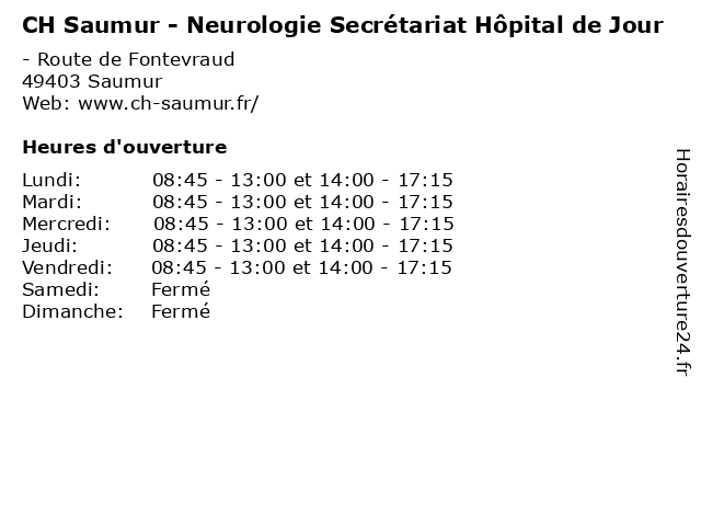 | Mardi | 08:45-13:00 et 14:00-17:15 |