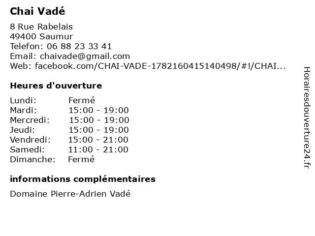 | Lundi | Fermé |