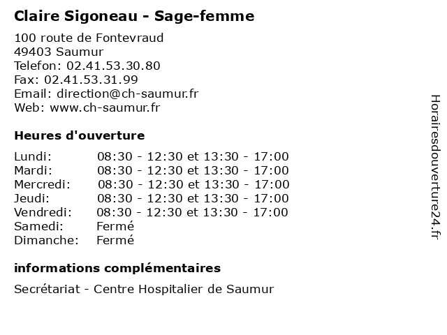 | Mercredi | 08:30-12:30 et 13:30-17:00 |