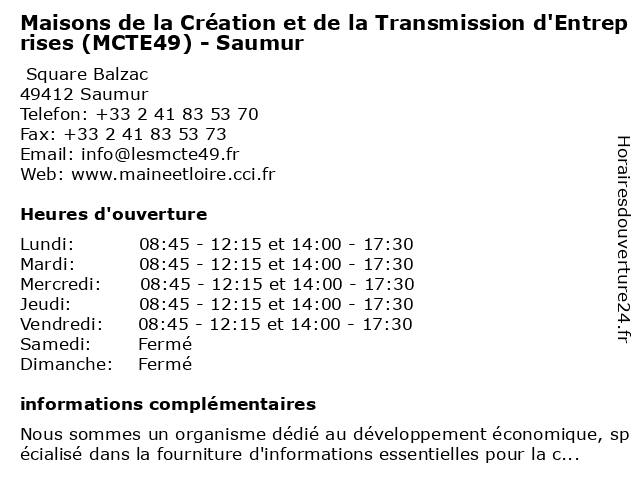 Termes de recherche pour Maisons de la Création et de la Transmission d'Entreprises (MCTE49) - Saumur:la, et, de, maisons, saumur, création, transmission, d'entreprises, mcte49 |