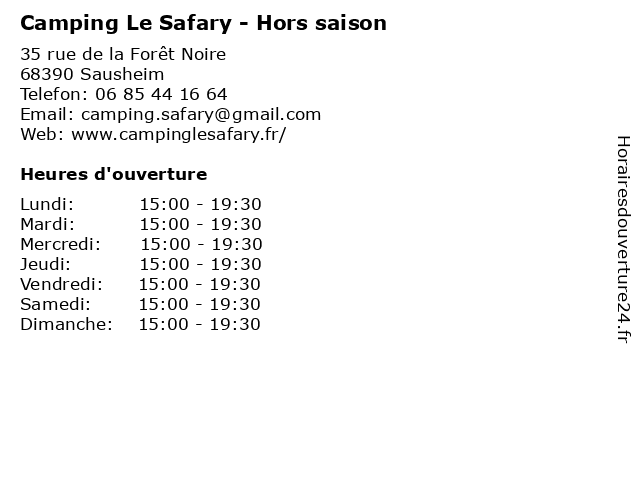 | Samedi | 15:00-19:30 |