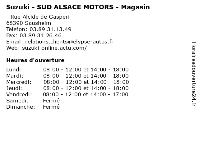 Termes de recherche pour Suzuki - SUD ALSACE MOTORS - Magasin:magasin, alsace, services, service, suzuki, sud, révisions, services d'automobiles, motors |