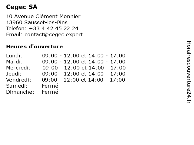 | Mercredi | 09:00-12:00 et 14:00-17:00 |
