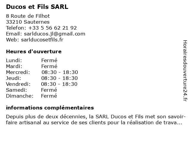 Termes de recherche pour Ducos et Fils SARL:et, sarl, fils, ducos |