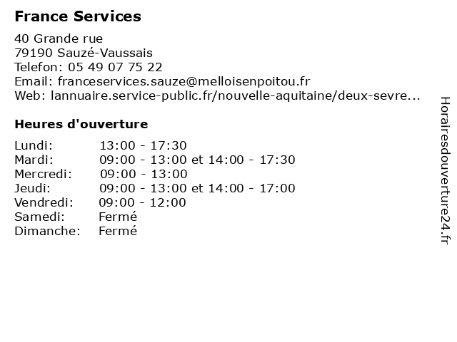 | Mardi | 09:00-13:00 et 14:00-17:30 |