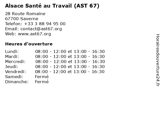 | Vendredi | 08:00-12:00 et 13:00-16:30 |