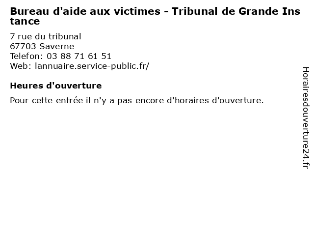 | Appeler Bureau d'aide aux victimes - Tribunal de Grande Instance | |