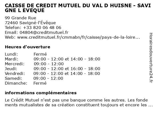 Termes de recherche pour CAISSE DE CREDIT MUTUEL DU VAL D HUISNE - SAVIGNE L EVEQUE:val, du, de, eveque, crédit, mutuel, caisse, savigné, huisne |