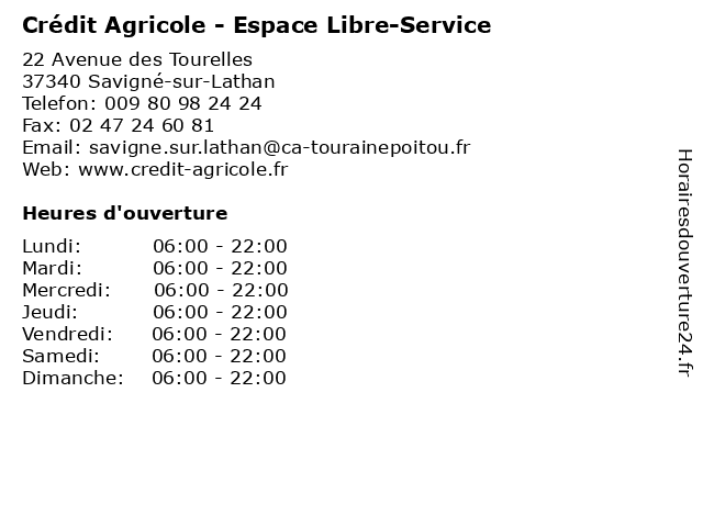 | Samedi | 06:00-22:00 |