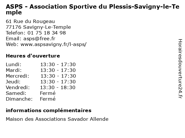 Termes de recherche pour ASPS - Association Sportive du Plessis-Savigny-le-Temple:du, le, savigny, temple, club, sports, sportif, plessis, activités, association, sportive, asps |
