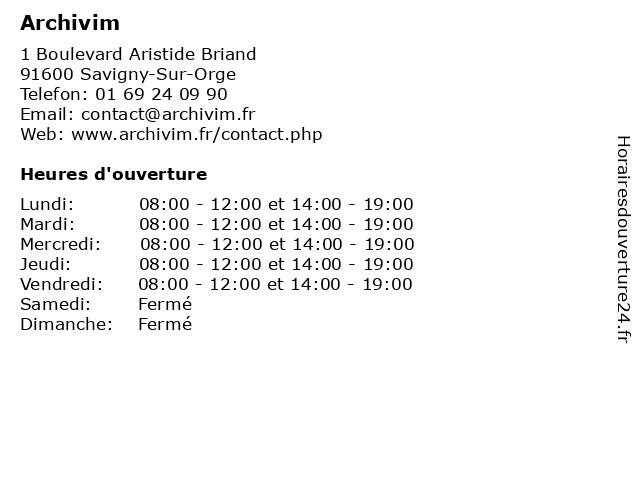 | Lundi | 08:00-12:00 et 14:00-19:00 |