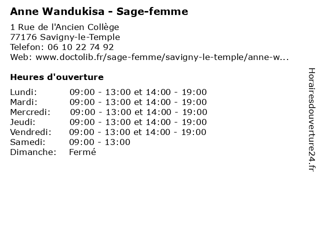 | Lundi | 09:00-13:00 et 14:00-19:00 |