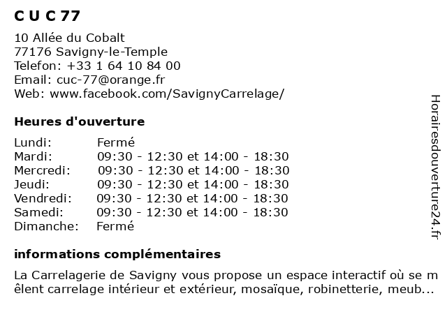 | Samedi | 09:30-12:30 et 14:00-18:30 |