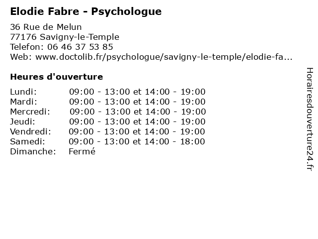 Lundi | 09:00-13:00 et 14:00-19:00 |