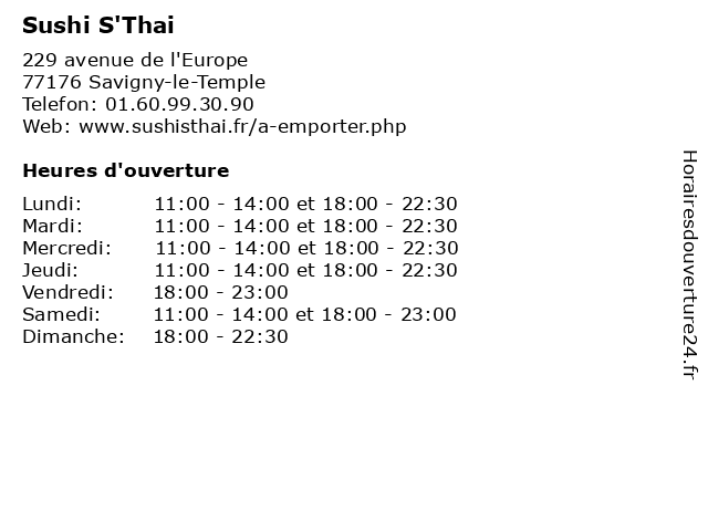 1 Sushi S'Thai (Distance: 7,94 km) 70 Rue de Someville, 77380 Combs-la-Ville asiatique, boissons, menus, plats, restaurant, s'thai, sushi, thai 3 Sushi S'Thai (Distance: 16,66 km) 1 Rue Gallieni, 91230 Montgeron asiatique, boissons, menus, plats, restaurant, s'thai, sushi, thai 4 Sushi Club (Distance: 1,55 km) Centre Commercial Maisonement, 77240 Cesson bar, bistro, bistrot, brasserie, café, club, restaurant, restauration, sushi 5 Sushi Gourmet Melun (Distance: 1,56 km) Rd306 Auchan, 77240 Cesson gourmet, melun, restaurants, sushi 6 Sushi Gourmet (Distance: 1,76 km) 306 Route Départementale, 77240 Cesson boissons, gourmet, nourriture, restaurant, sushi |