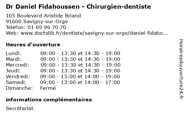 | Lundi | 09:00-13:30 et 14:30-19:00 |