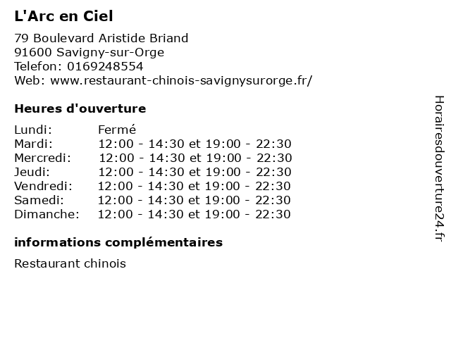 | Dimanche | 12:00-14:30 et 19:00-22:30 |