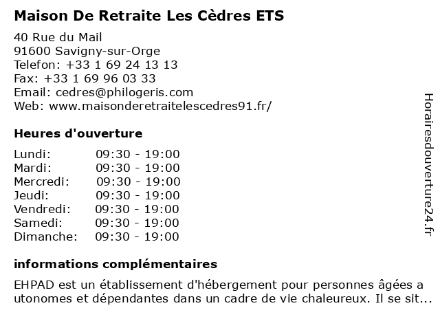 | Samedi | 09:30-19:00 |