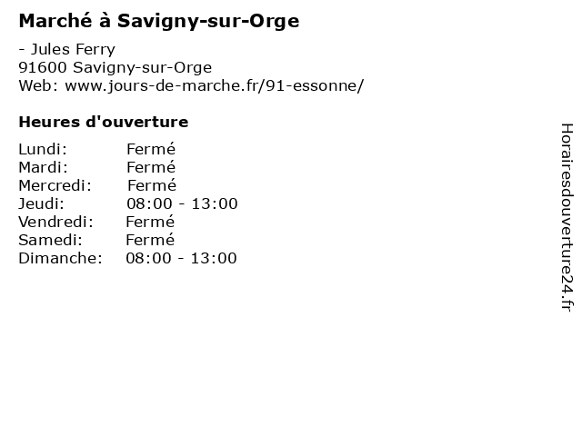 1 Marché à Savigny-sur-Orge (Distance: 0,60 km) - Davout, 91600 Savigny-sur-Orge frutas, hortalizas, marché, mercado, orge, savigny, sur, verduras 2 Marché à Savigny-sur-Orge (Distance: 3,45 km) - Place du Miroir, 91600 Savigny-sur-Orge frutas, hortalizas, marché, mercado, orge, savigny, sur, verduras 3 Pharmacie du Marché (Distance: 0,57 km) 4 Rue Louis Jacques Mezard, 91600 Savigny sur Orge du, herboristerie, marché, médicaments, paramédical, parapharmacie, pharmacie, pharmacien, santé, traitements 4 Marché de Blazy (Distance: 1,81 km) . Centre Ville, 71450 Blazy alimentaire, blazy, de, fleur, habillement, marché, services 5 Marché à Viry-Châtillon (Distance: 2,26 km) - Centre ville, 91170 Viry-Châtillon châtillon, frutas, hortalizas, marché, mercado, verduras, viry 6 Marché de la Villa à Draveil (Distance: 4,53 km) - Quartier de la Villa, 91210 Draveil de, draveil, frutas, hortalizas, la, marché, mercado, verduras, villa |