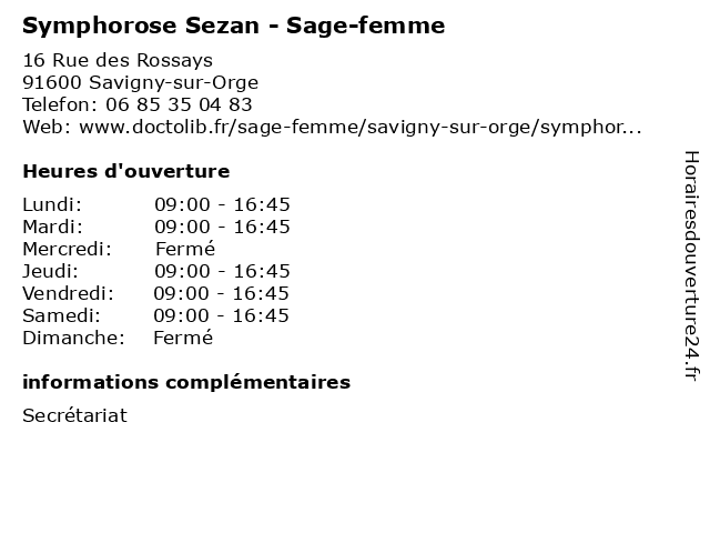 1 Diane Fanda - Sage-femme (Distance: 0,00 km) 16 Rue des Rossays, 91600 Savigny-sur-Orge diane, fanda, femme, medical, sage, sagefemme 2 Dr Dina Bendavid - Médecin généraliste (Distance: 0,32 km) 2 Avenue Charles de Gaulle, 91600 Savigny-sur-Orge bendavid, dina, docteur, dr, generaliste, généraliste, medical, médecin, soin 3 Domidom (Distance: 1,24 km) 150 Boulevard Gabriel Péri, 91170 Viry Chatillon aide à domicile, alzheimer, domidom, dépendance, medical, services 4 Pauline Vautrin - Ostéopathe (Distance: 1,36 km) 22 Rue Nungesser et Coli, 91170 Viry-Châtillon actes et symptômes, expertises, ostéopathe, ostéopathie de la femme enceinte, ostéopathie pédiatrique, pauline, vautrin 5 Dr Rim Dhai - Médecin généraliste (Distance: 1,47 km) 76 Boulevard Aristide Briand, 91600 Savigny-sur-Orge dhai, docteur, dr, generaliste, généraliste, medical, médecin, rim, soin 6 Dr Céline Besnier - Médecin généraliste (Distance: 1,52 km) 9 Avenue des Écoles, 91600 Savigny-sur-Orge besnier, céline, docteur, dr, generaliste, généraliste, medical, médecin, soin |