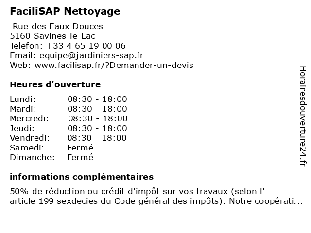 1 FaciliSAP Nettoyage (Distance: 24,57 km) Avenue Emile Aubert, 04400 Barcelonnette facilisap, nettoyage 2 FaciliSAP Nettoyage DIGNE LES BAINS (Distance: 49,95 km) 3 Rue de la Grande Fontaine, 04000 Digne-les-Bains bains, digne, facilisap, les, nettoyage 3 Feu Vert (Distance: 24,30 km) 93 Avenue d'Embrun, 05000 Gap automobile, centre auto, dépannage, entretien, feu, garage, nettoyage, pièces techniques, pneus, réparation, transport, tuning et accessoires, vert, équipement intérieur / extérieur auto 4 Top Clean 05 (Distance: 27,91 km) - Belle Aureille, 05000 Gap 05, clean, nettoyage, professionnalisme, propreté, service, services de nettoyage, top 5 ECOCLIM (Distance: 40,58 km) Les Lauzès du Villard, 04000 La Robine-sur-Galabre accleaner, climatisation hôtels restaurants, désinfection climatisation, ecoclim, entretien vmc, installation climatisation, nettoyage climatisation 6 |